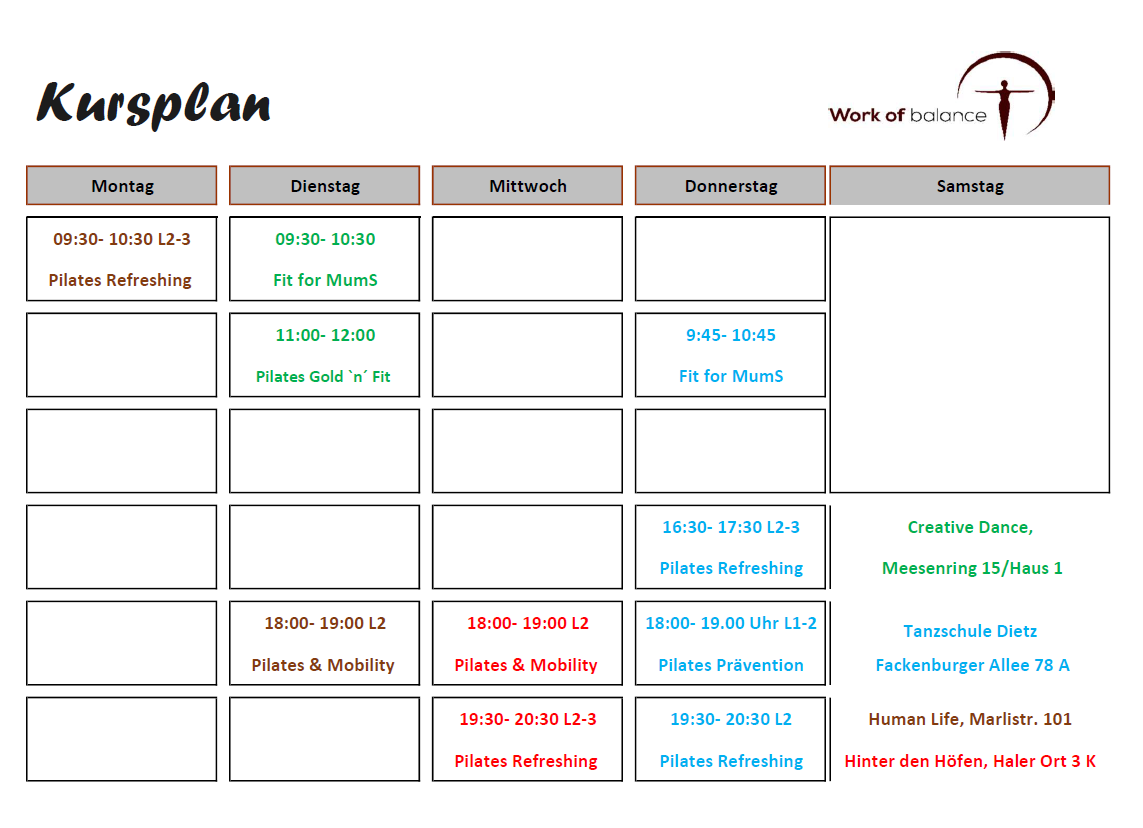 Der Kurs am Donnerstag um 18:00 Uhr, startet erst im September, dieser Kurs wird nicht online angeboten!